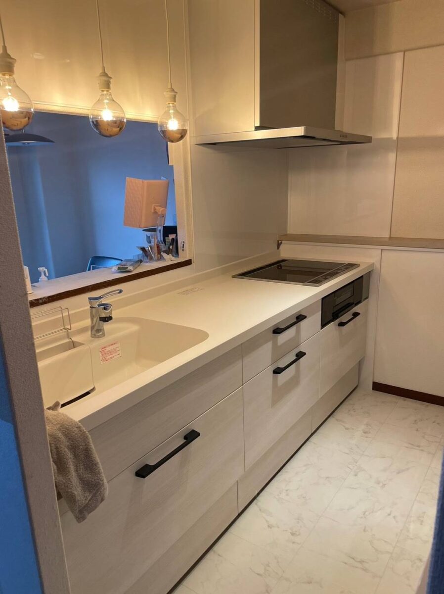 「吊り戸を撤去し、ペンダントライトを取り付けました。白を基調とした明るい空間へ生まれ変わりました。」